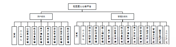系统架构图属于系统设计阶段,系统架构图只是这个阶段一个产物,系统的总体架构决定了整个系统的模式,是系统的基础。校园爱心公益平台的整体结构设计如图4-2所示。