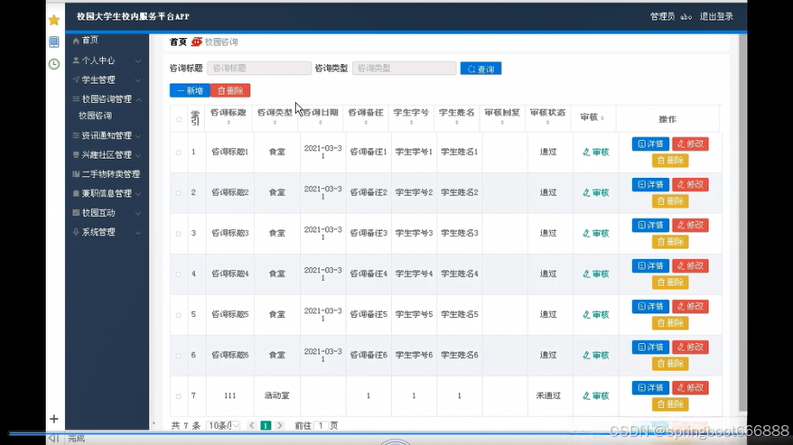 | 【7】 | ssm疫情期间的校园防控管理系统 |