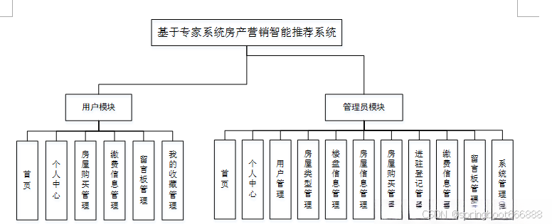 系统架构图属于系统设计阶段,系统架构图只是这个阶段一个产物,系统的总体架构决定了整个系统的模式,是系统的基础。基于专家系统房产营销智能推荐系统的整体结构设计如图4-2所示。