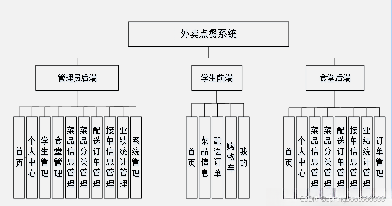 这个外卖点餐系统的功能结构设计如图4-1所示。