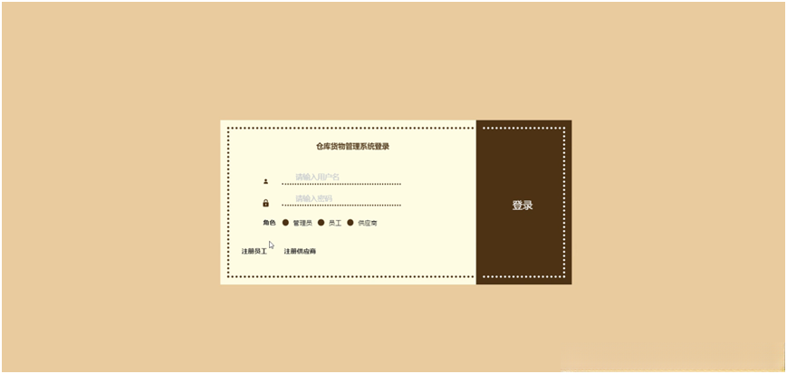 员工登录系统为员工操作界面,主要包括个人中心、商品信息管理、采购商品管理、仓库商品管理、入库商品管理、出库商品管理、公告信息管理等功能;