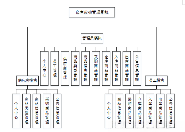 系统分为管理员功能模块、员工功能模块和供应商功能模块。