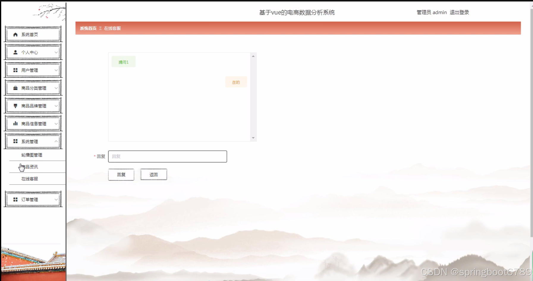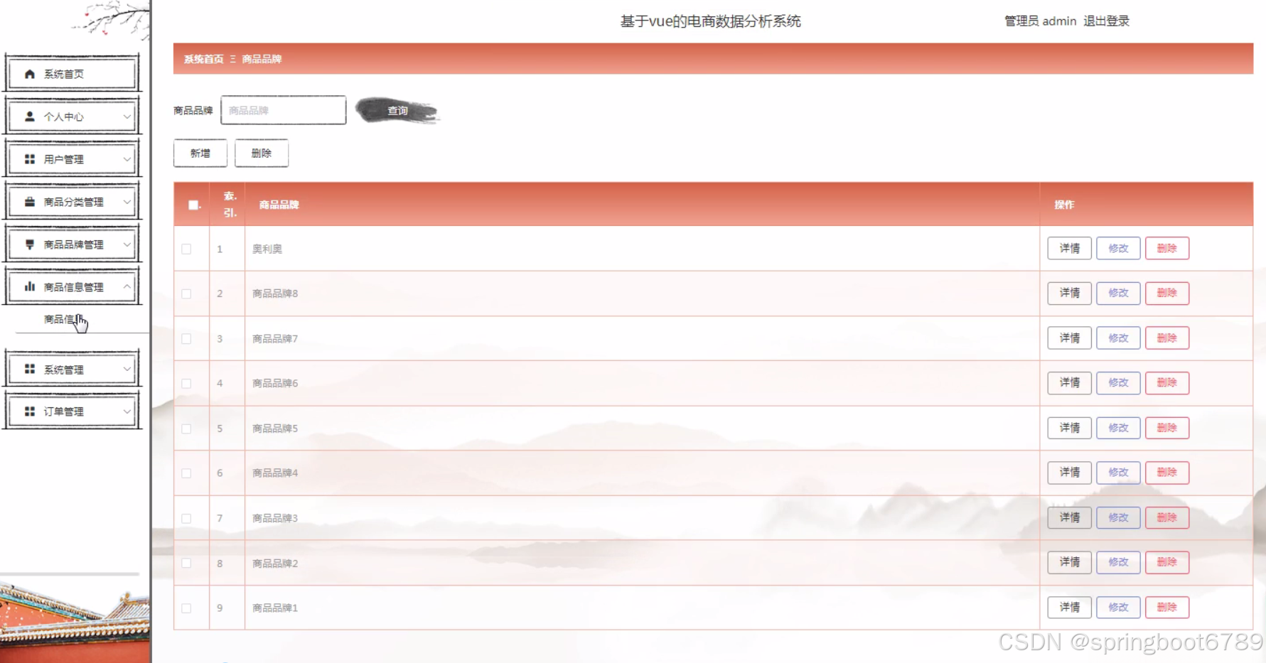 研究目的: 本研究的目的是设计和实现一款基于Vue的电商数据分析系统,该系统能够实现用户管理、商品分类管理、商品品牌管理、商品信息管理和数据分析等功能,提高电商企业的决策效率和竞争力。