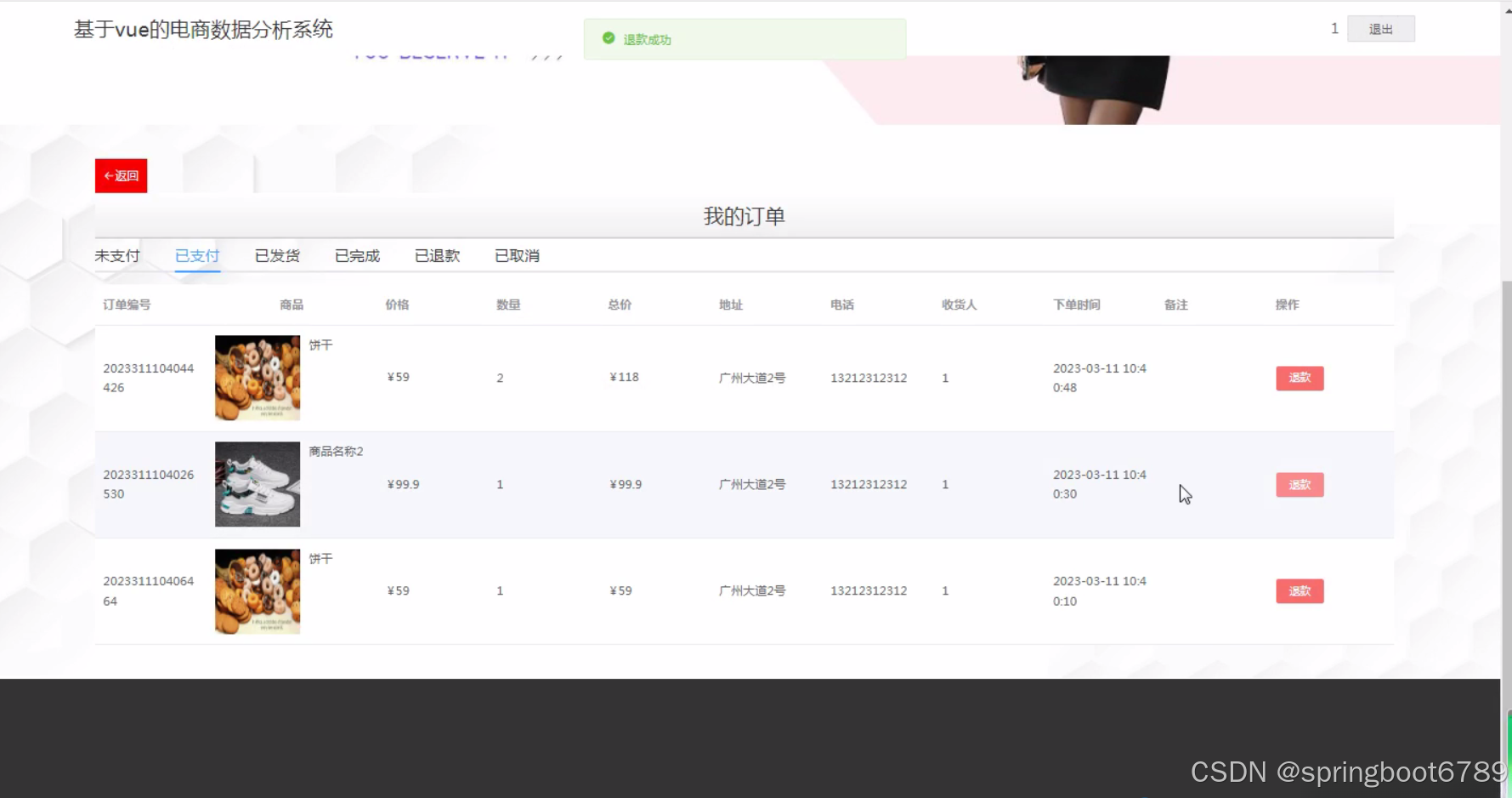 研究背景: 随着互联网的快速发展,电子商务已经成为了人们生活中不可或缺的一部分。然而,对于电商企业来说,如何有效地分析用户的购买行为、商品销售情况以及市场趋势等信息,成为了一个亟待解决的问题。因此,开发一款基于Vue的电商数据分析系统具有重要的现实意义。