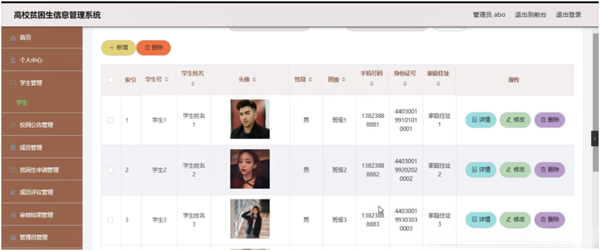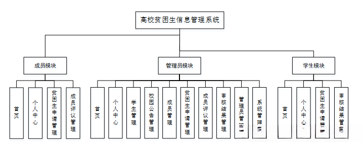 系统架构图属于系统设计阶段,系统架构图只是这个阶段一个产物,系统的总体架构决定了整个系统的模式,是系统的基础。高校贫困生信息管理系统的整体结构设计如图4-2所示。