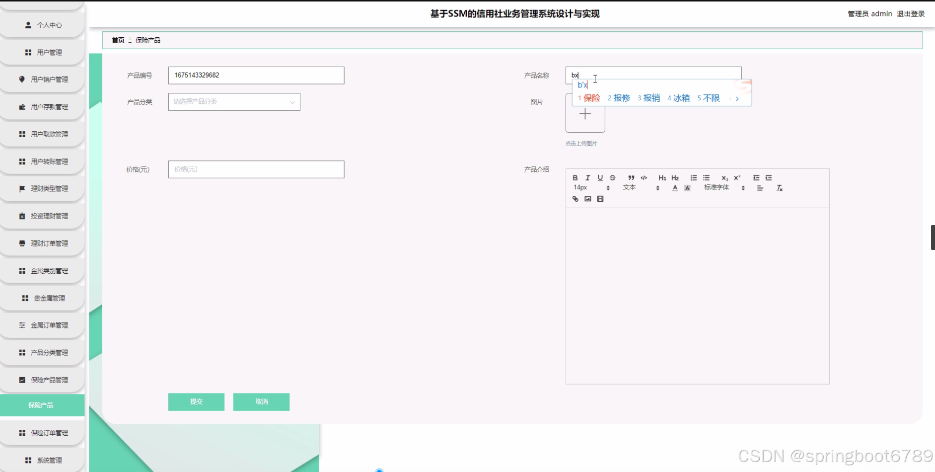 研究意义: 基于SSM的信用社业务管理系统的研究与实现对于推动信用社业务管理工作具有重要意义。首先,系统可以帮助信用社更好地获取和管理客户信息、贷款信息等数据,提高服务效率。其次,通过对业务流程的优化和数据分析,可以为信用社提供有关服务质量和用户体验的建议。最后,系统还可以为信用社业务管理提供一个便捷、高效的管理平台,提高服务质量和效率。
