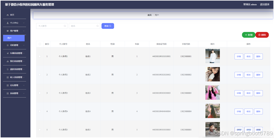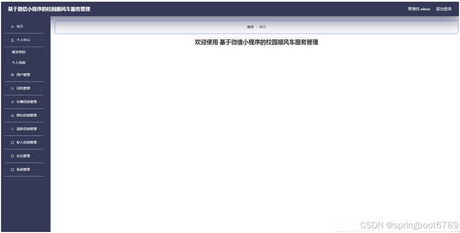校园顺风车服务管理小程序分三大部分,即管理员、用户和司机管理。系统按照用户的实际需求开发而来,贴近生活。从管理员出拿到分配好的账号密码可以进入小程序,使用相关的系统应用。管理员总体负责整体系统的运行维护,统筹协调。