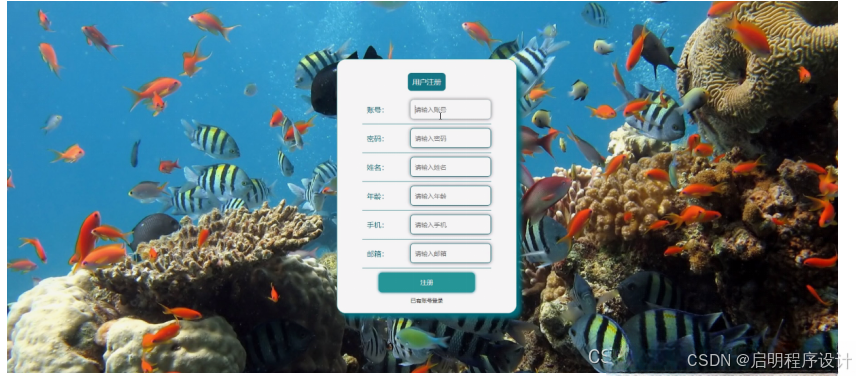 用户注册,在用户注册页面通过填写账号、密码、姓名、年龄、手机、邮箱等信息完成用户注册,如图4-2所示。在个人中心页面通过填写账号、密码、姓名、性别、年龄、手机、邮箱、图片、余额等信息进行信息更新,还可以根据需要对我的订单、我的地址、我的收藏进行相应操作,如图4-3所示。