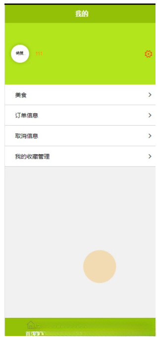 用户,在我的页面可以对美食、订单信息、取消信息、我的收藏等信息进行查看与操作,如图5-7所示。