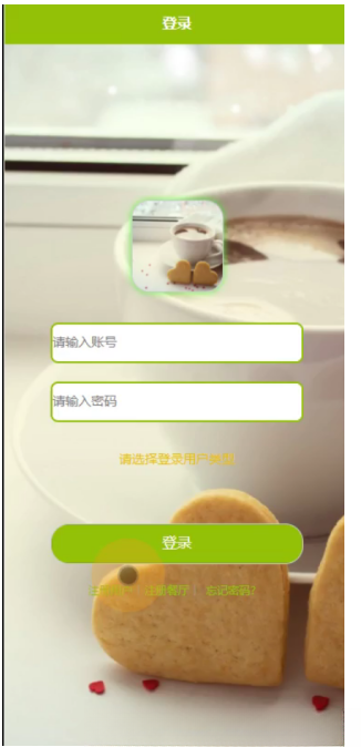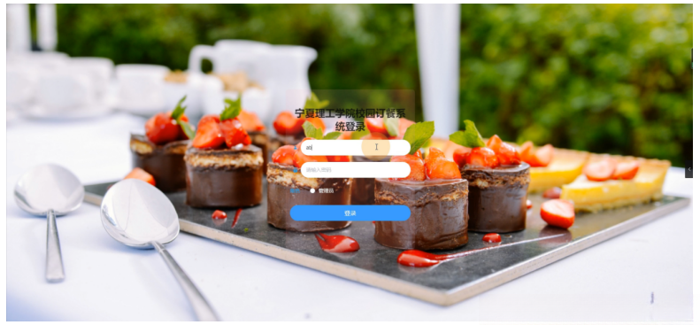 宁夏理工学院校园订餐系统登录界面,通过填写账号、密码、登录用户类型等信息进行登录,如图5-1所示。