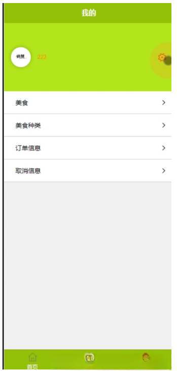 餐厅,在我的页面可以对美食、美食种类、订单信息、取消信息等信息进行查看与操作,如图5-5所示。
