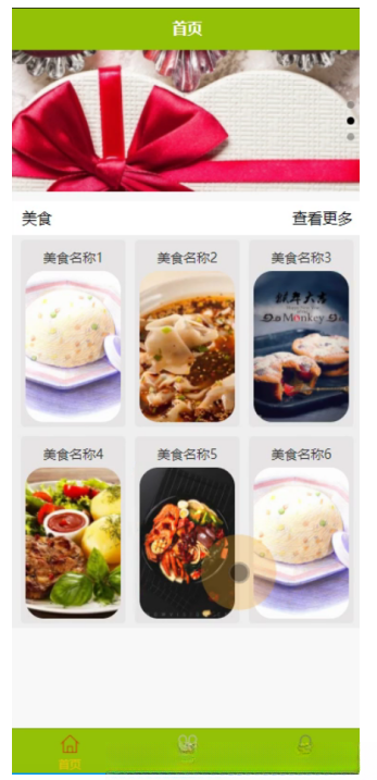 用户和餐厅登录进入首页,可以进行首页、美食、我的等功能模块的查看与操作,如图5-3所示。