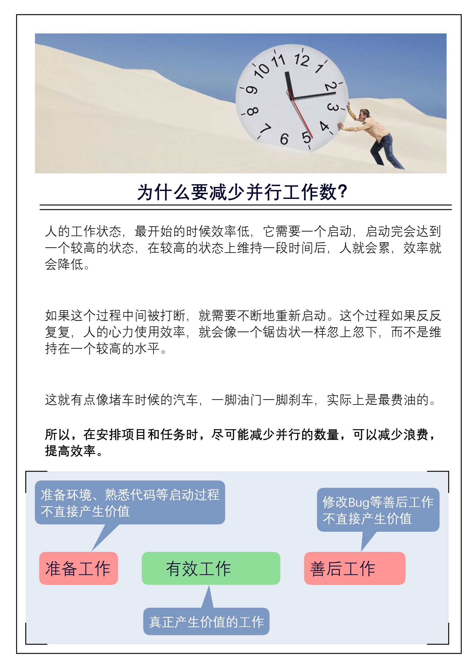 因此,减少并行开发工作,让开发人员专注于单一任务,可以有效减少这种“切换成本”,提升工作效率。