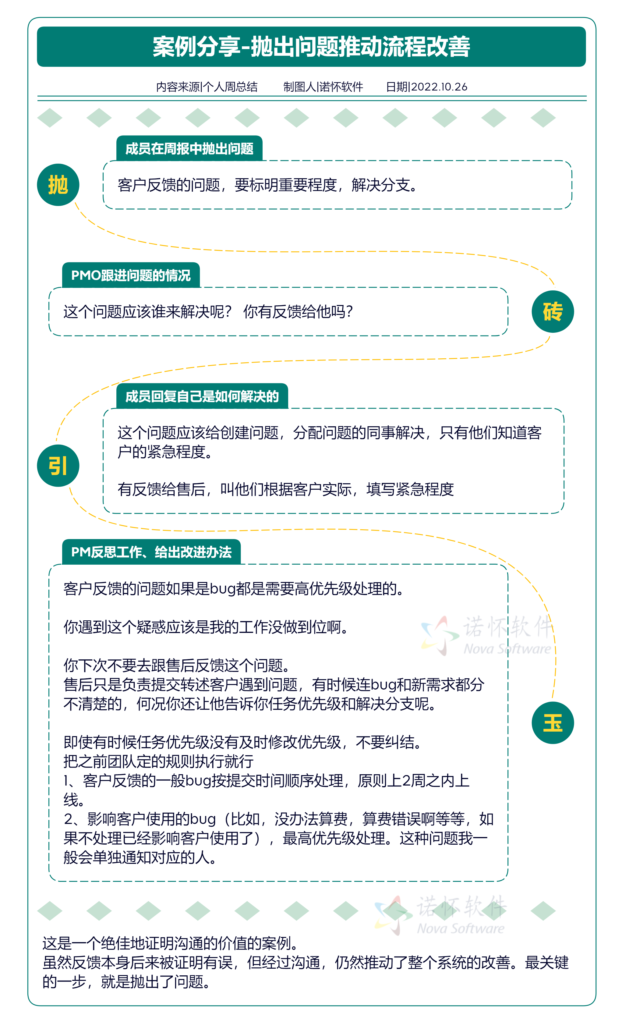 正如案例所示,有时候一个简单的周报问题,就能引发整个系统的优化。在诺怀软件,每周的周报时间,都是团队变得更好的机会。