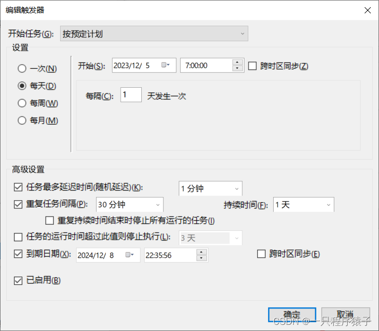- 选择任务的触发条件,比如每天、每周或每月等;