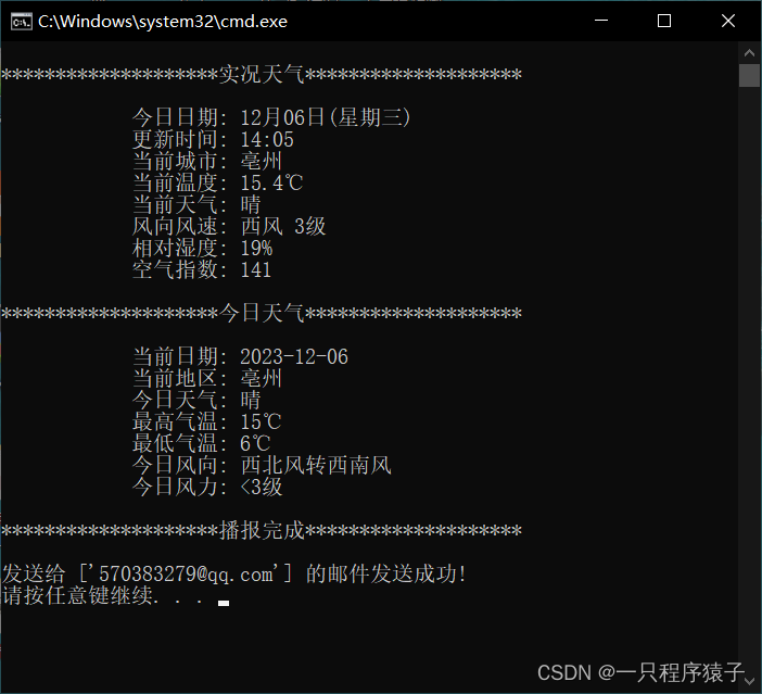 本文将介绍使用Windows系统自带的任务计划程序,定时运行一个自动发送天气提醒邮件的批处理程序!这个批处理程序中将调用我们提前编写好的Python程序,包含天气信息爬虫程序和自动化发送邮件的程序。
