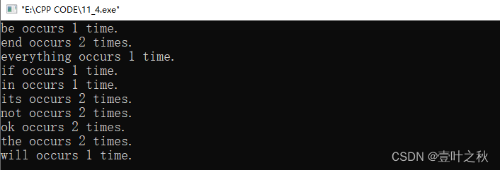 cout << e.first << " occurs " << e.second << " time" << (1 < e.second ? "s." : ".") << endl;