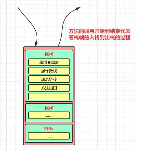 JVM是基于栈结构的运行环境,栈结构移植性更好,可控性更强。JVM中的虚拟机栈是描述Java方法执行的内存区域,属于 线程私有。当线程开始执行时,每个方法执行时都会创建一个栈桢来存储方法的的局部变量表、操作数栈、动态链接方法、返回值、返回地址等信息。每个方法从调用直结束就对于一个栈桢在虚拟机栈中的入栈和出栈过程,如下:
