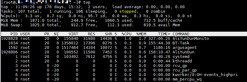 | 第1行 | 系统运行时间与负载 | 当前时间、系统已运行时间、当前登录用户数、系统平均负载(1分钟、5分钟、15分钟) |
