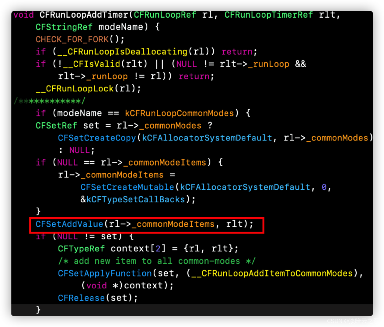 __CFRunLoopAddItemToCommonModes : 把timer添加到每一个mode中