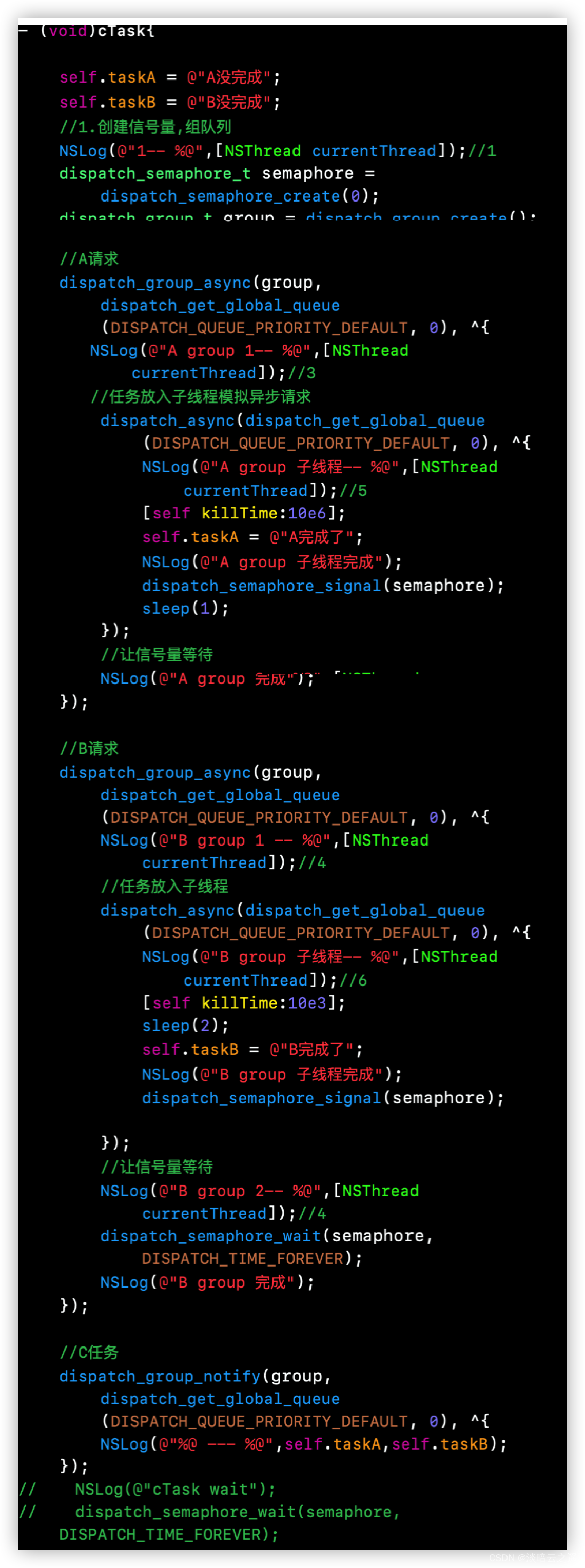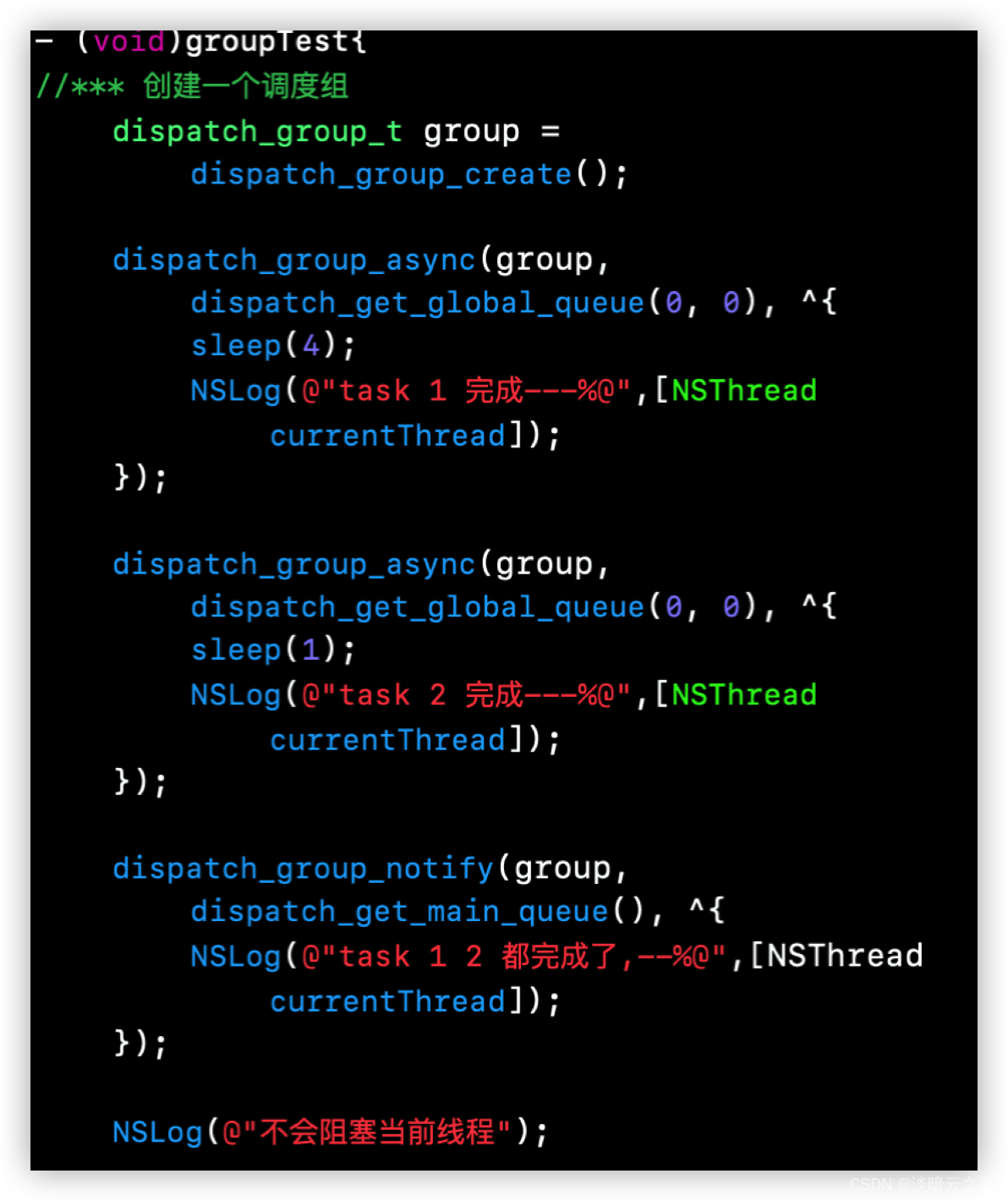 - 所有加入调度组的任务都完成了之后,才会执行通知的函数