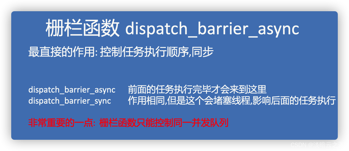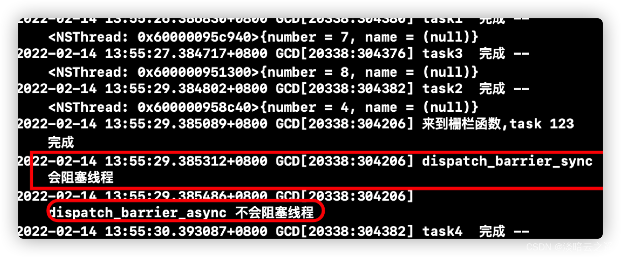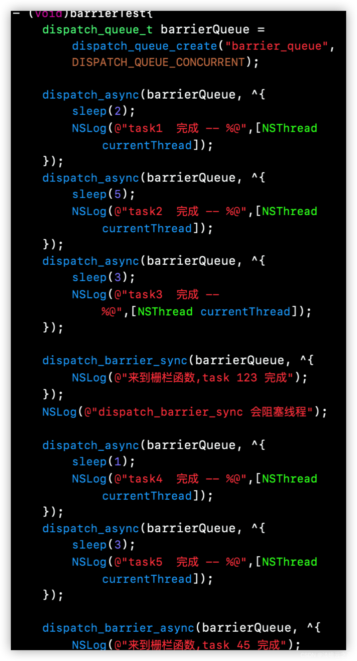- dispatch_barrier_sync/async 之前的任务执行完了才能执行执行这个函数