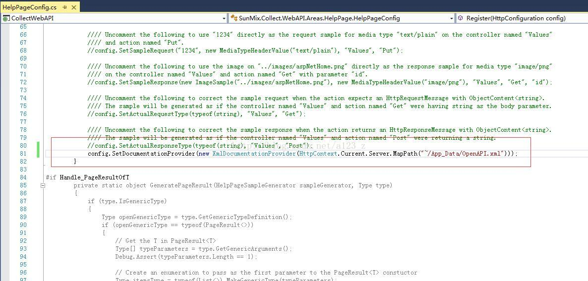 (2)在xml的读取路径:在Areas\HelpPage\App_Start\HelpPageConfig.cs里面配置xml的读取路径。