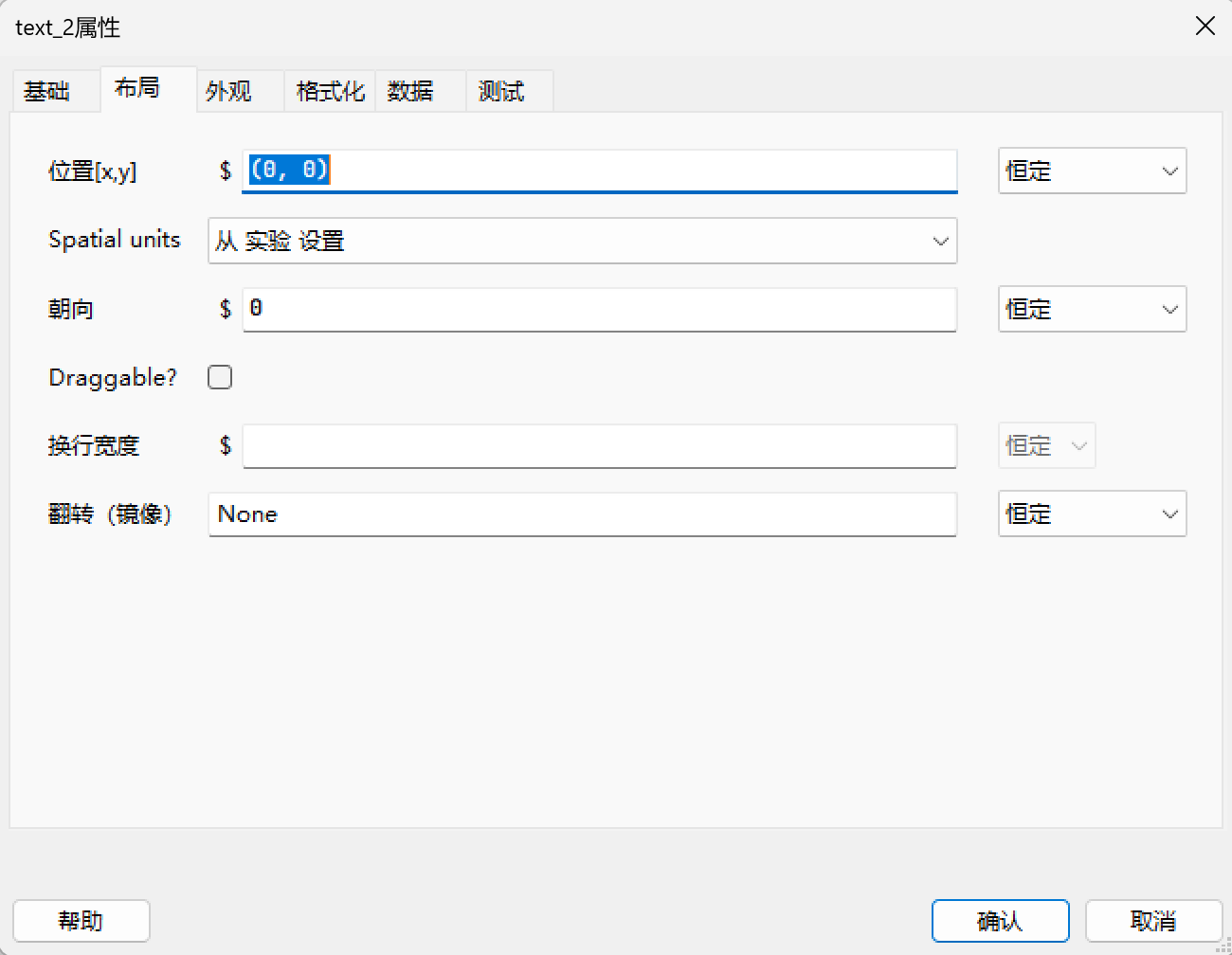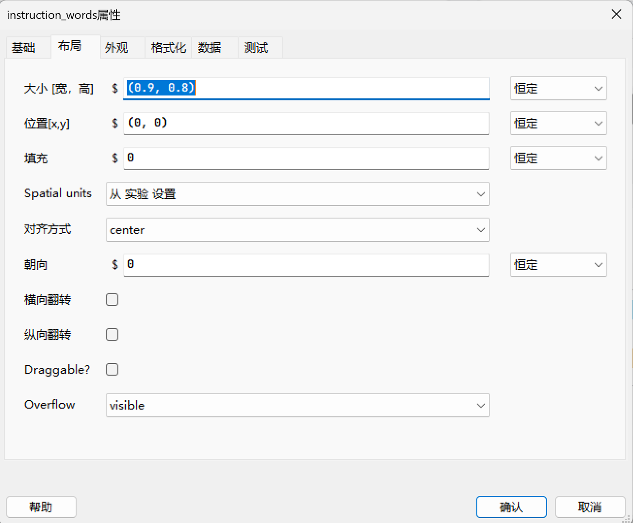 短文本可以居中,但长文本居中不了,首先check了文本属性布局的位置发现都没问题,关于spatial units,在experiment settings-屏幕-单位中设置为height。不知道是不是电脑分辨率屏幕尺寸不标准引起的问题。