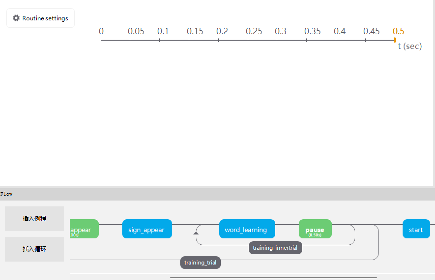 固定时长的routine(绿色)会自动结束,但非固定时长的(蓝色)需要设置结束条件。