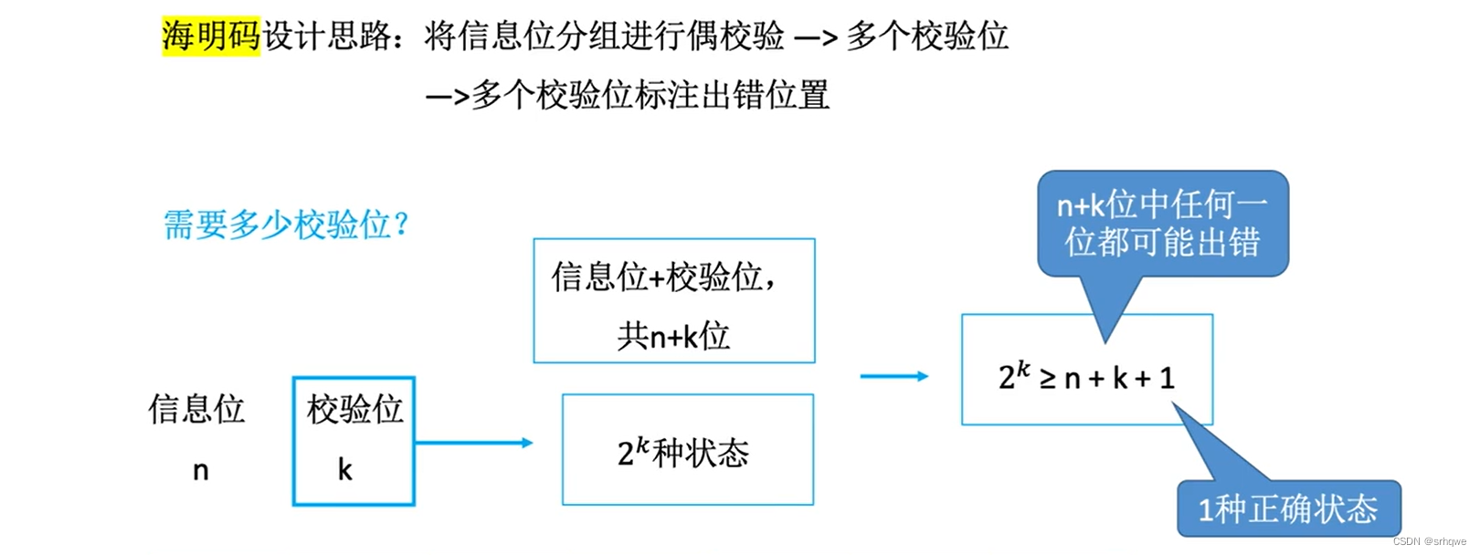 n是数据位数;k是校验位数