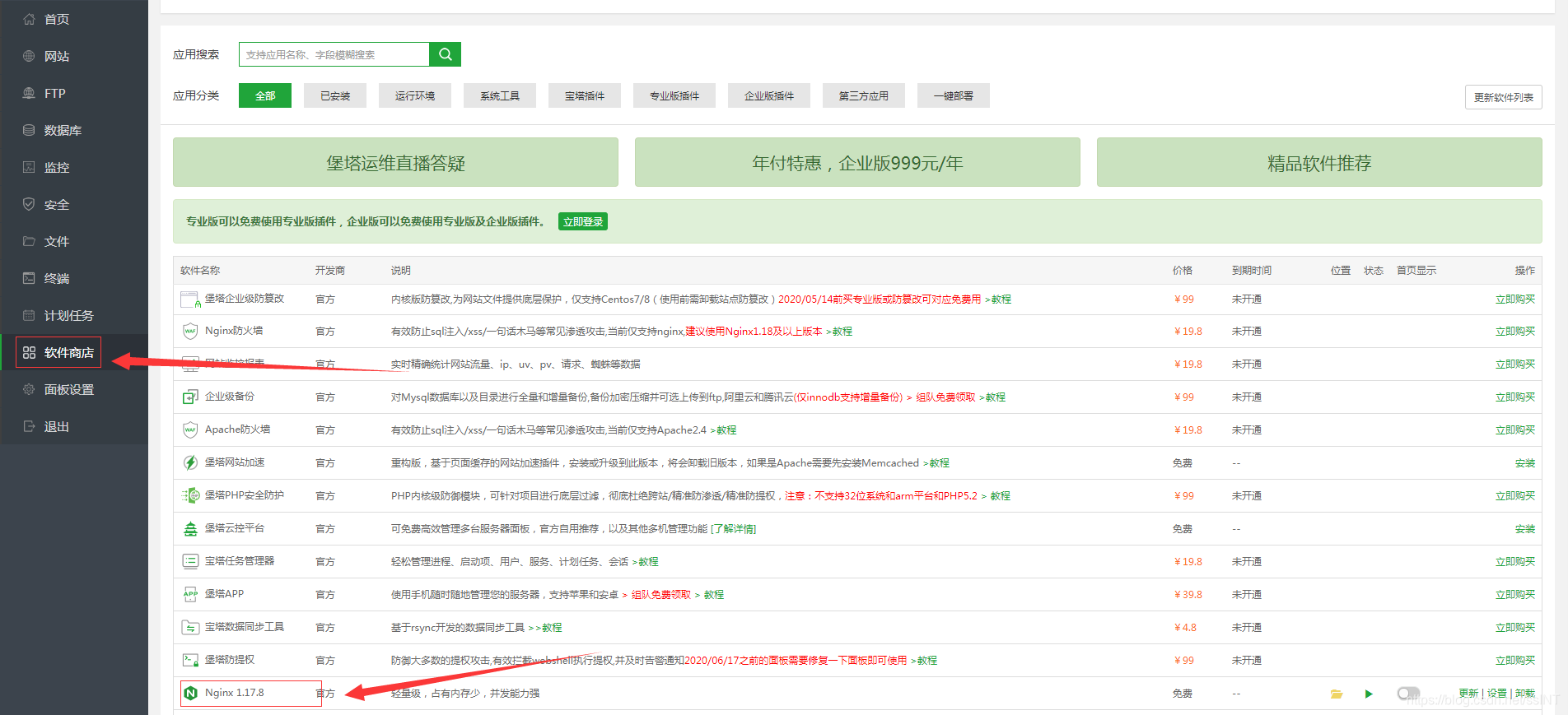 3.打开宝塔Linux面板(软件商店-->Nginx)