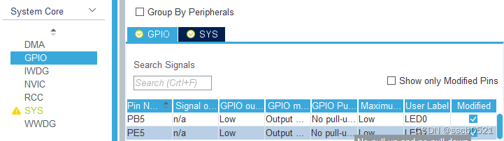 2、LED0连接到PB5,PB5设置为推挽输出。PE5同理。