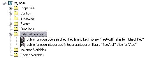 Function int Add(int a ,int b ) Library "TestA.dll"