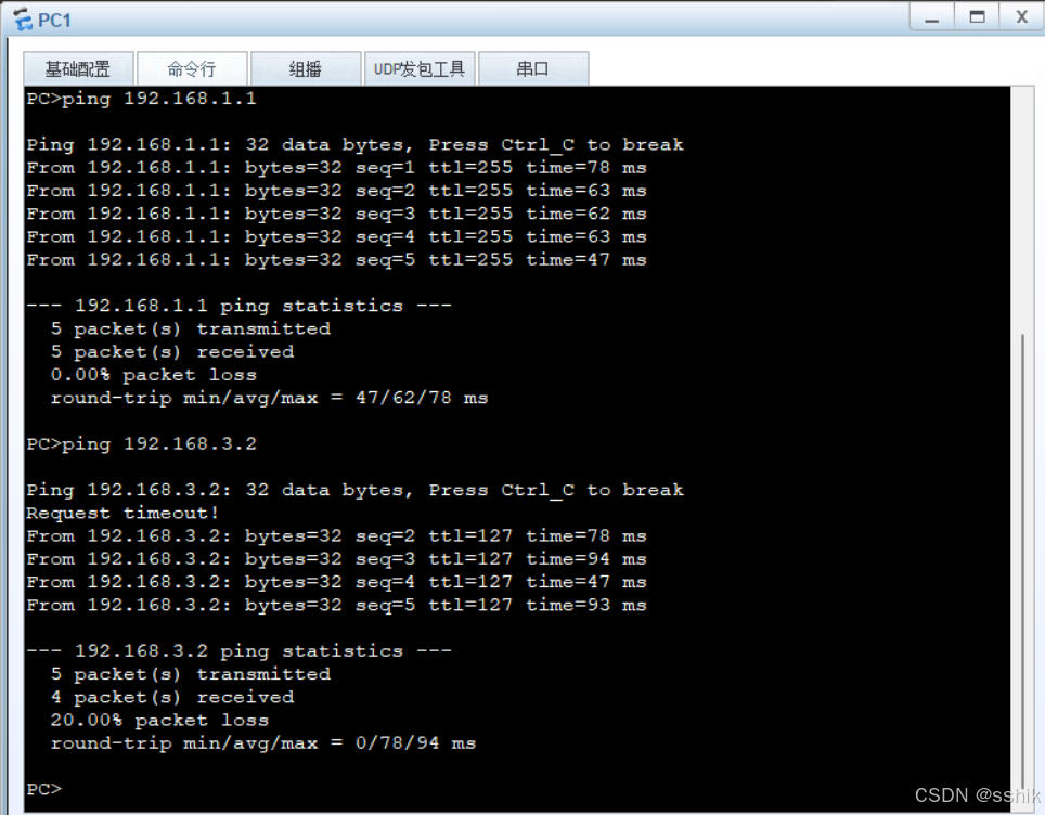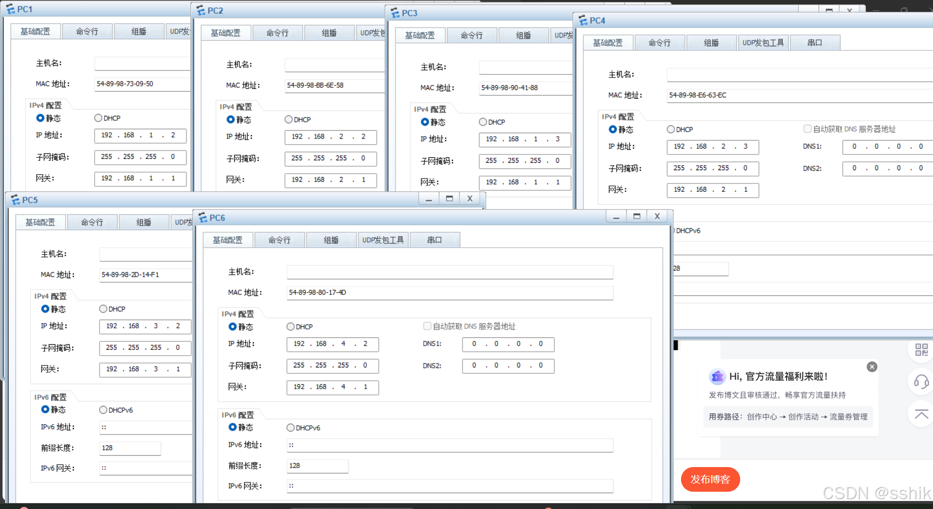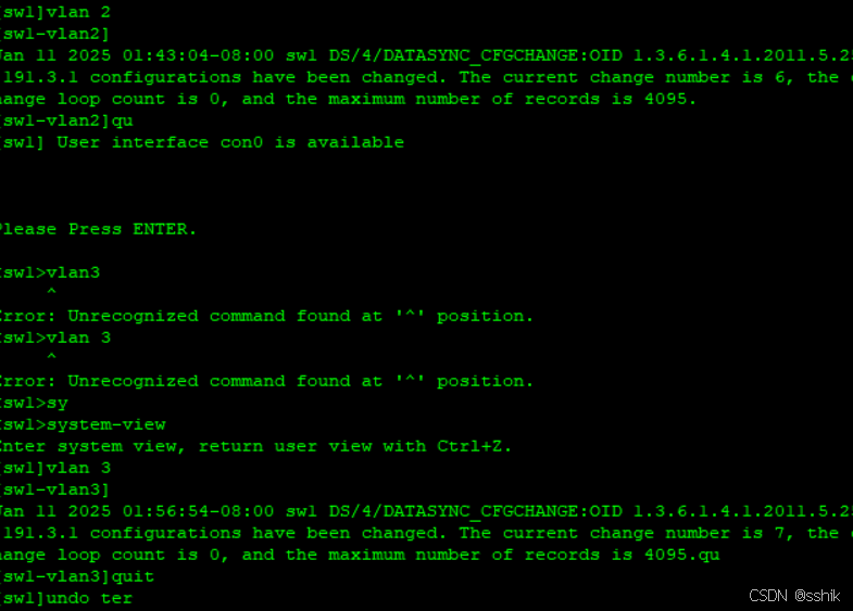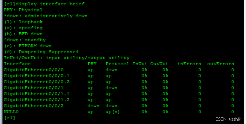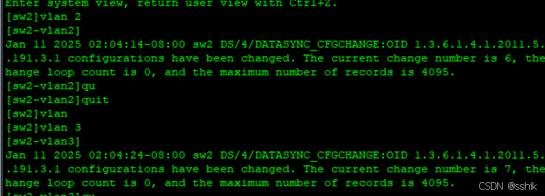 5.划分路由器,并将路由器上的虚拟子接口分给vlan1和vlan2