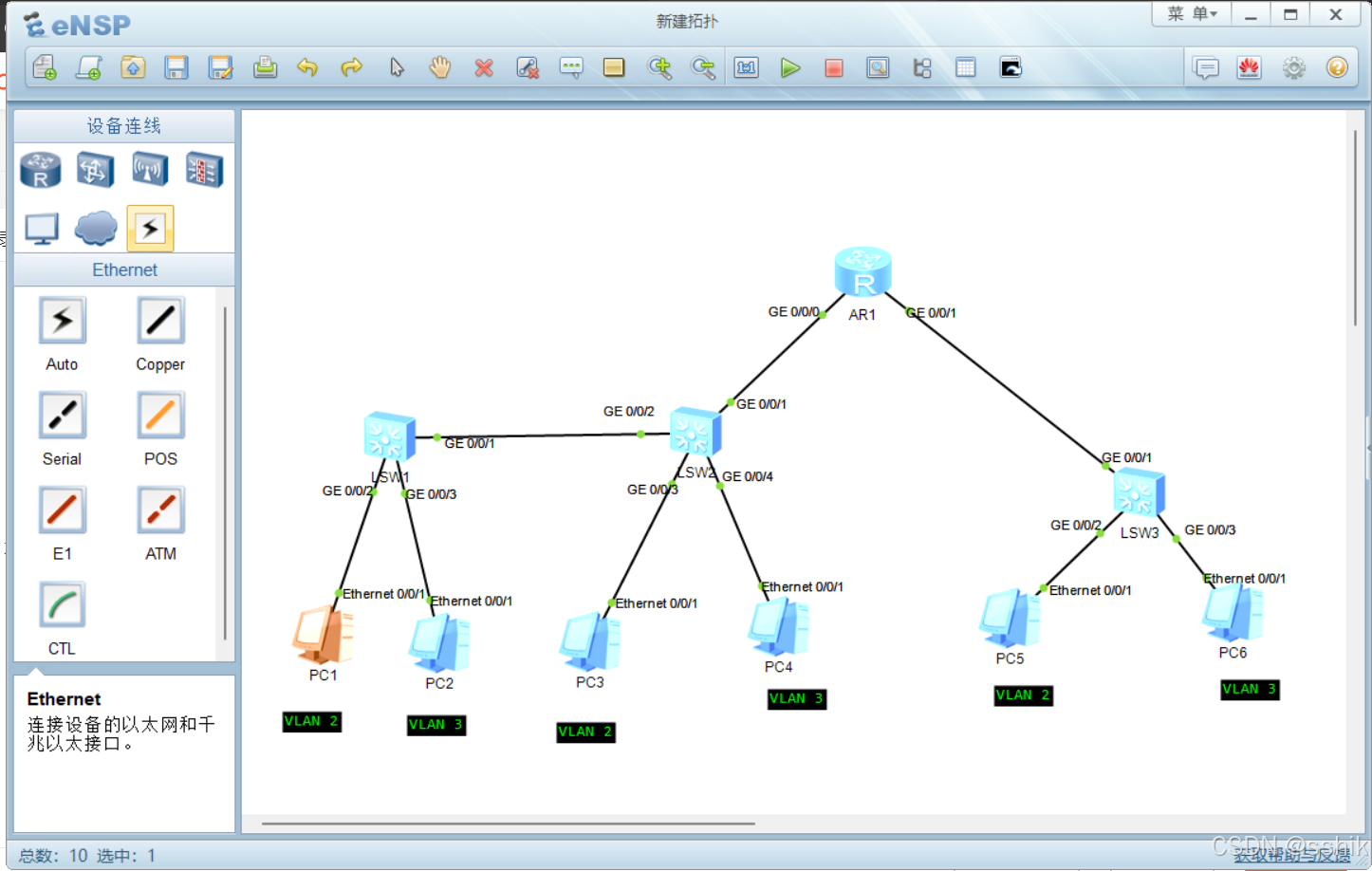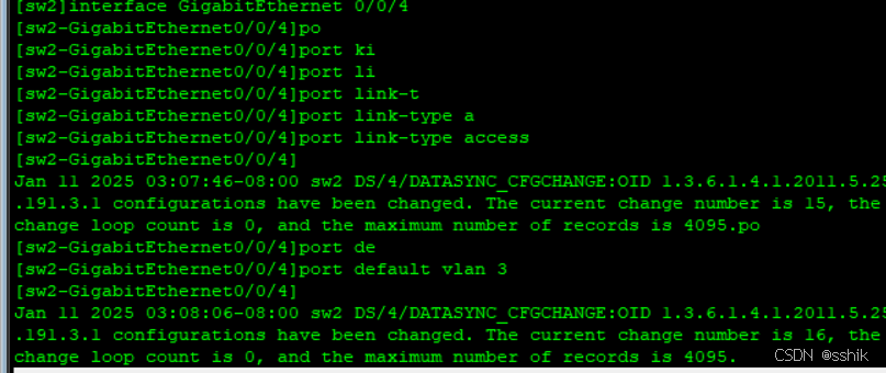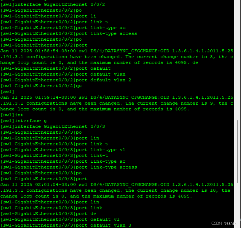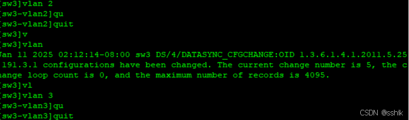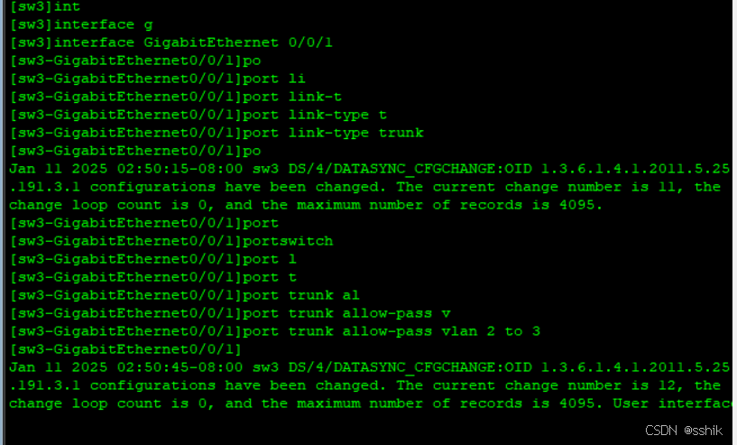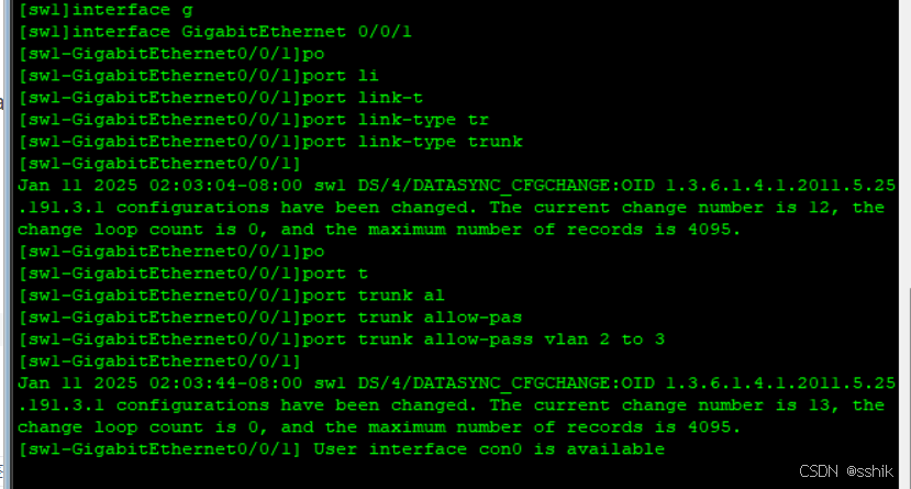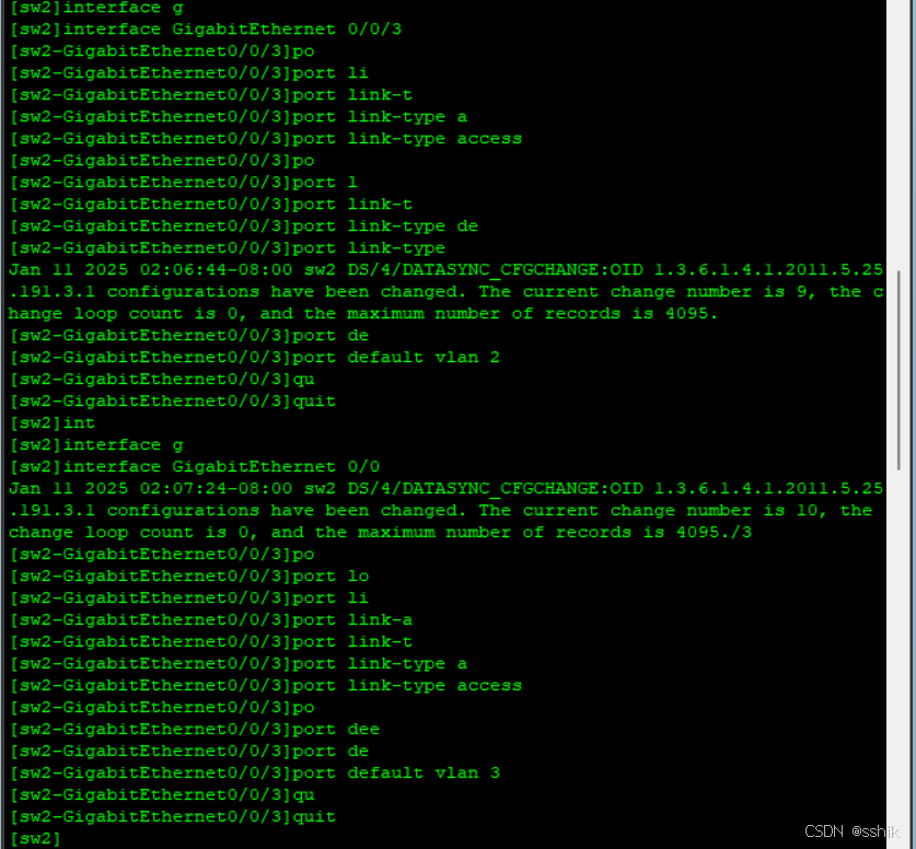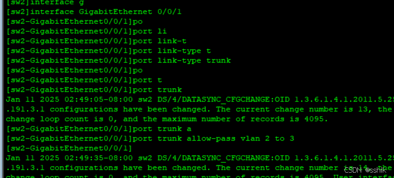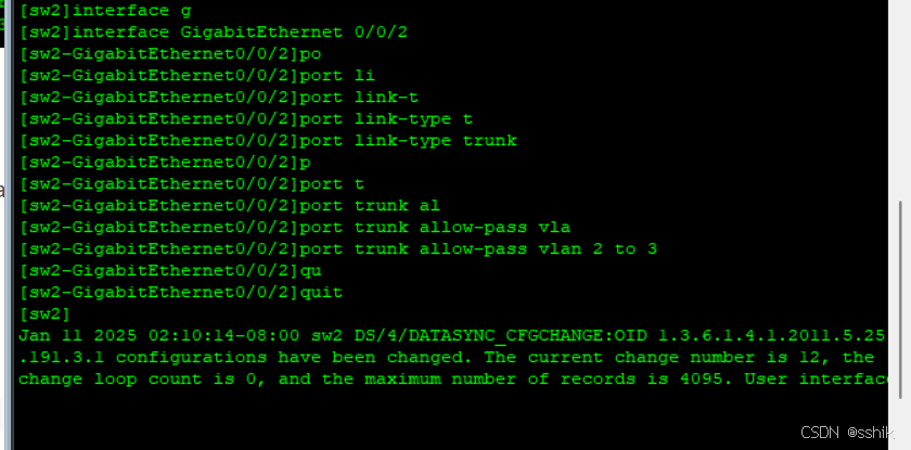 4.创建sw1和sw2之间的trunk干道及交换机和pc之间的access干道
