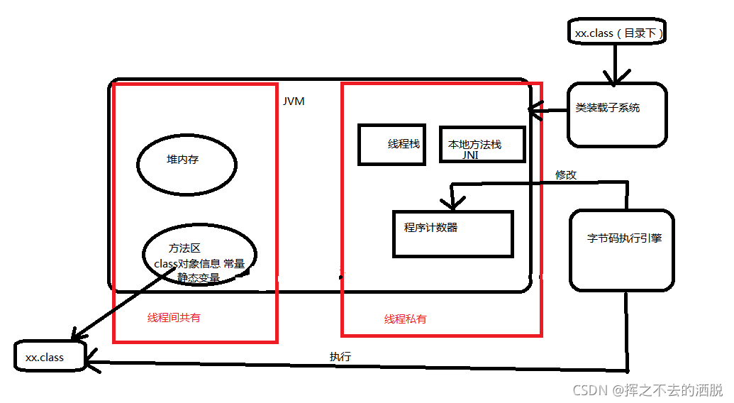 (2)方法区:存放了class对象(java.lang.Class,代表xx类)、常量、静态变量等,其中JDK1.7之前,方法区叫永久代(PermGen),JDK1.8之后叫元空间(MetaSpace)