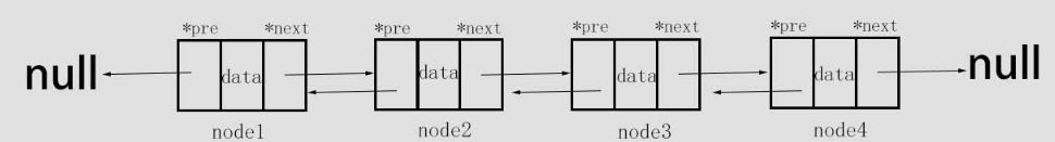 单向链表每个节点只有一个next指针,增加一个pre指针用来指向前一个节点,这样就能够往前往后的双向查找了。