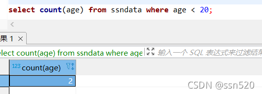 举例:统计年龄小于20的人数 //不能写出sum(age)