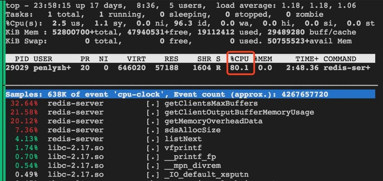 有用户通过定期执行info命令监视redis的状态,这会在一定程度上导致CPU占用偏高。频繁执行info时通过perf分析发现getClientsMaxBuffers、getClientOutputBufferMemoryUsage及getMemoryOverheadData这几个函数占用CPU比较高。