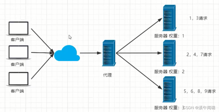 server 127.0.0.1:8082/ weight=1; //服务地址、端口 权重-比例,可以用来设置负载均衡