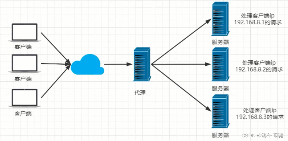 IP Hash:客户端请求的IP进行Hash操作,然后根据Hash结果将同一个客户端ip的请求分发给同一台服务器进行处理,可以解决session不共享的问题;(一般其实使用Redis进行解决)