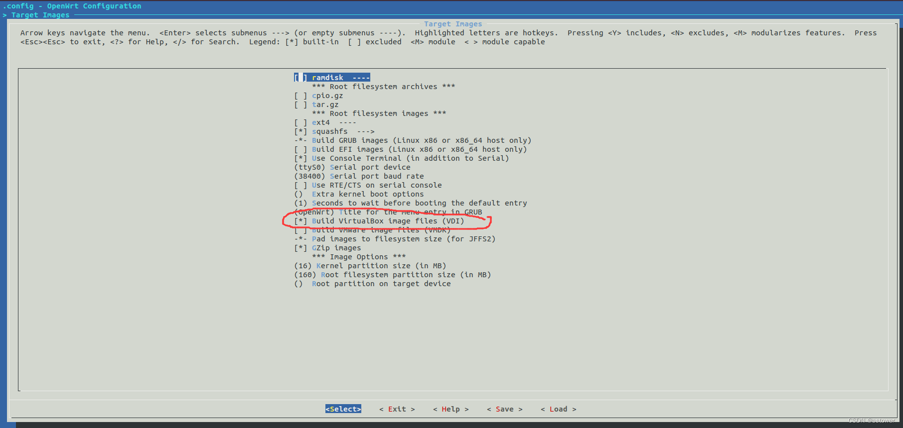 1.下载好openwrt源代吗,编译之前先配置,让编译产生x86的virtualbox 镜像: