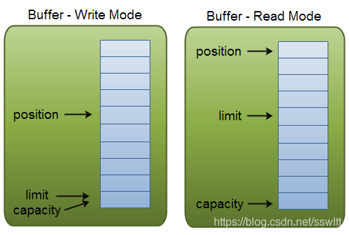 capacity作为一个内存块,buffer有一个固定的大小值,也叫capacity,只能向内存中写入byte,long,char等类型。一旦Buffer满了,需要将其清空。