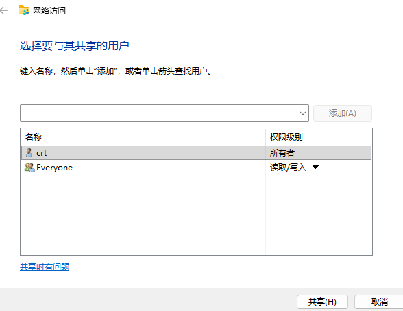2.高级共享-权限-添加-everyone-权限全部勾选