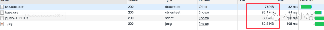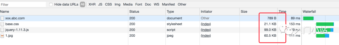 现在我们开启了 gzip 进行压缩后的文件的大小,可以看到如下所示:
