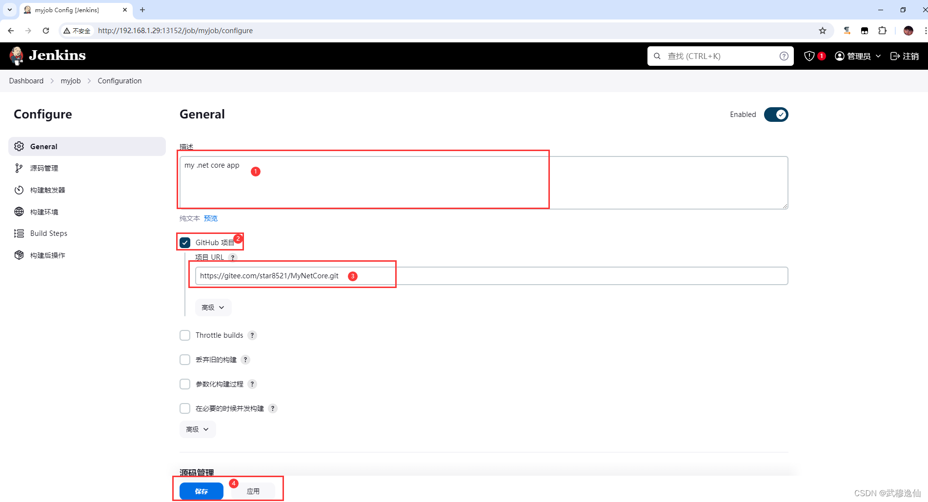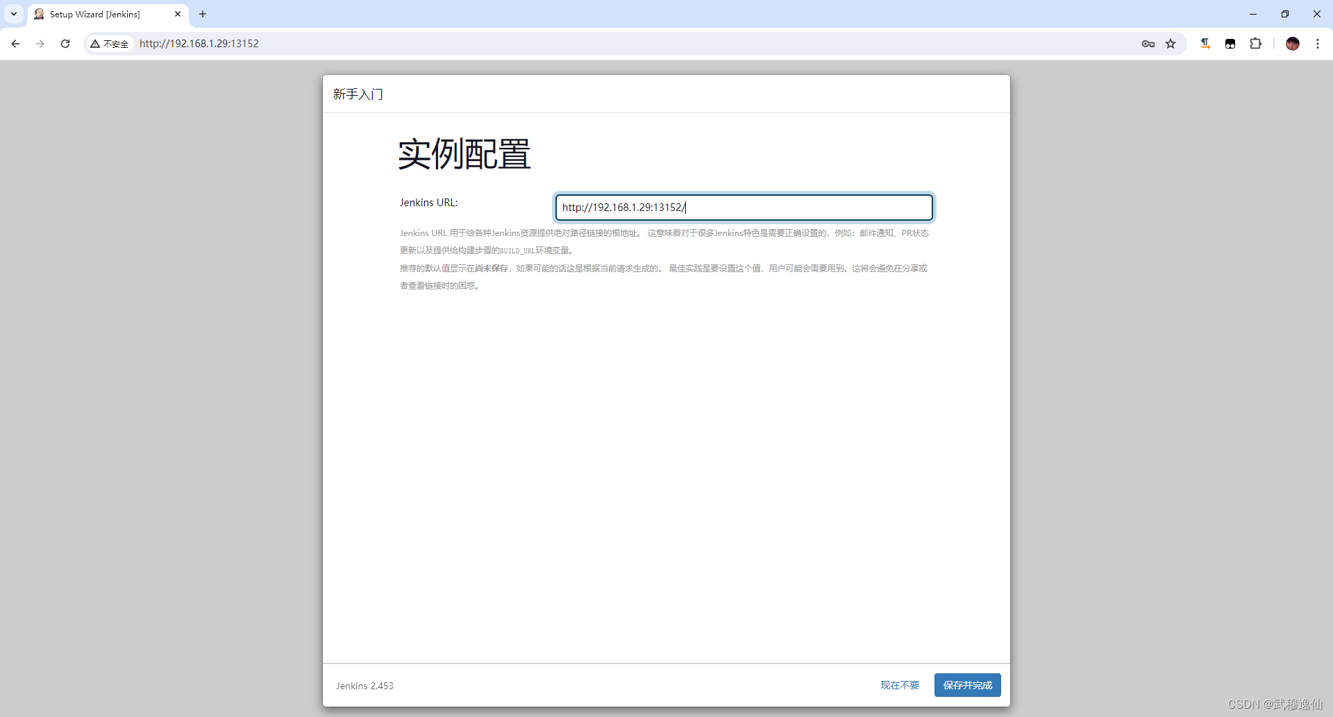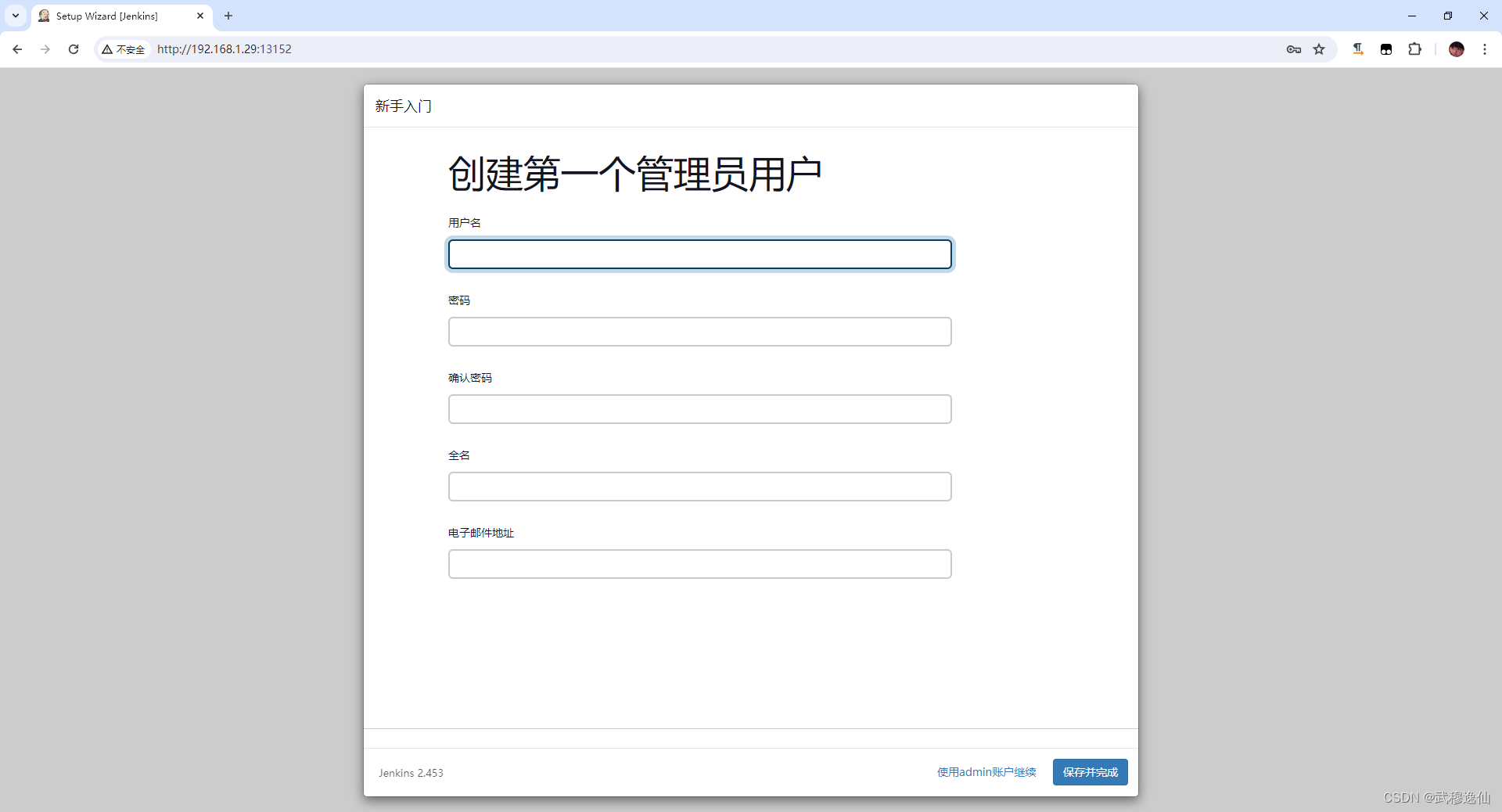 输入管理员用户信息后,点击【保存并完成】,即可查看 Jenkins URL