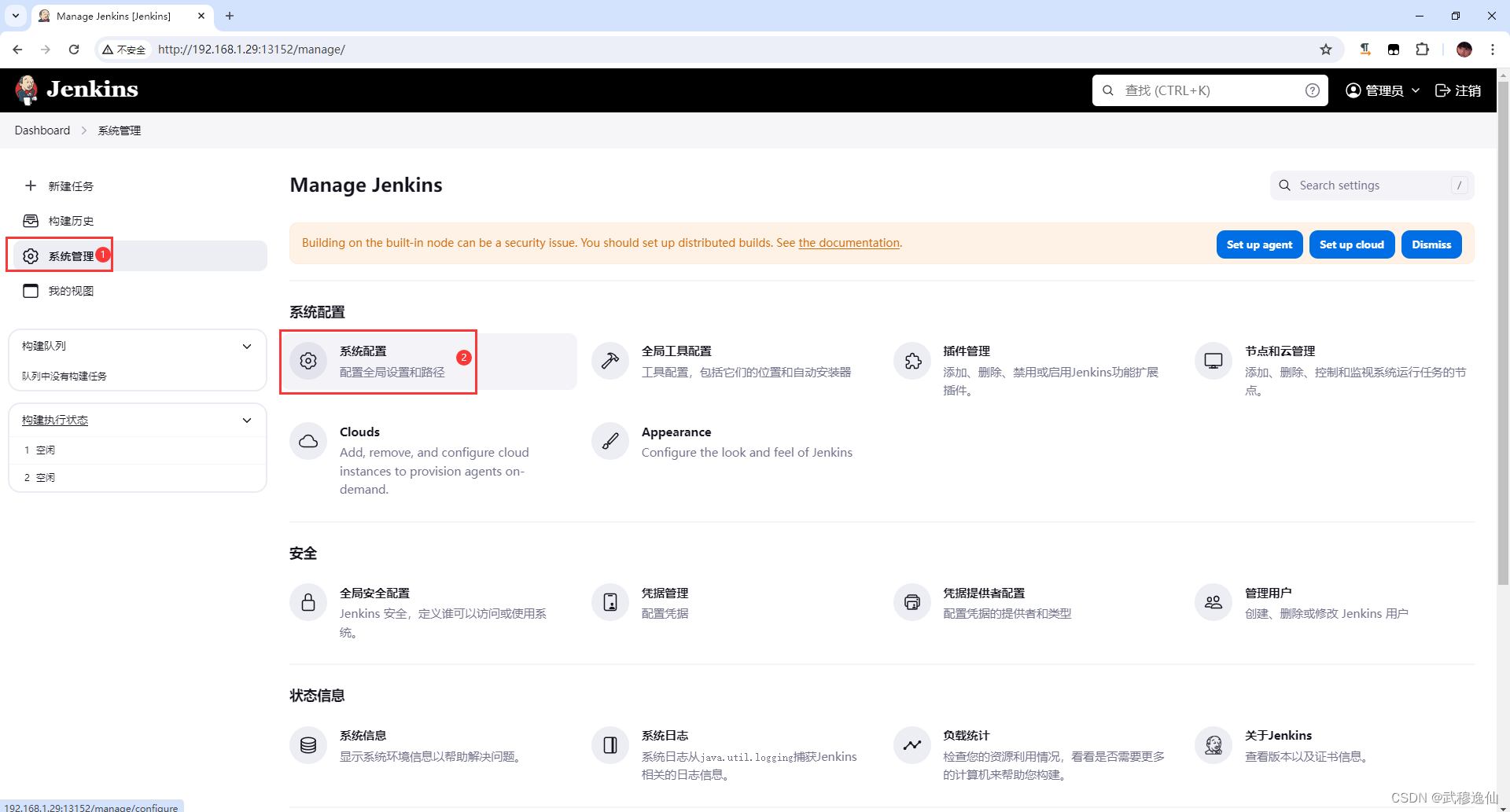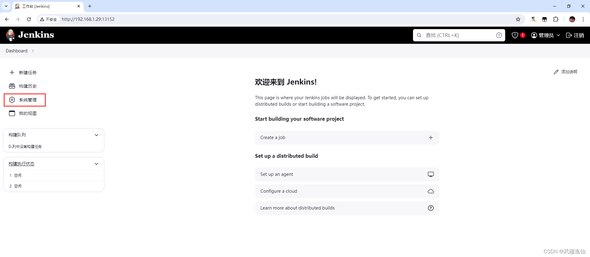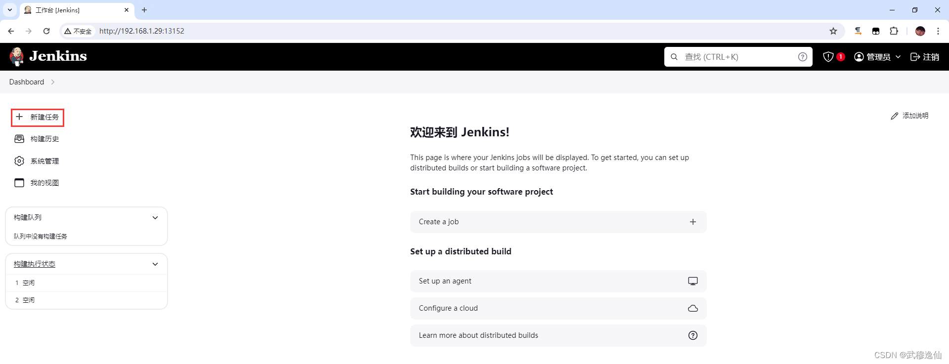 点【开始使用Jenkins】,安装完毕,进入欢迎页面。