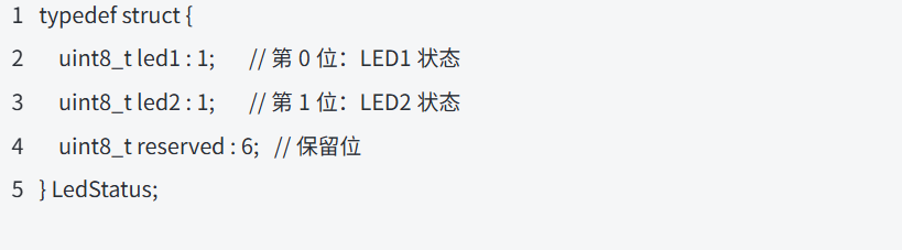 - 位域定义:直接操作结构体中的特定位(如状态标志位):