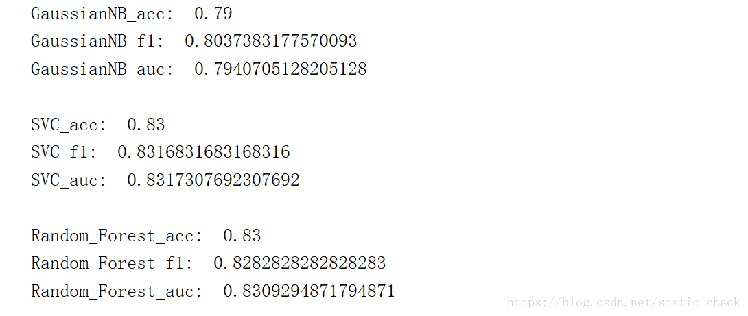 对于Naive Bayes( 天真的港湾 朴素贝叶斯),SVM, Random Forest三种算法,接下来的套路都是相同的,不妨以朴素贝叶斯为例。