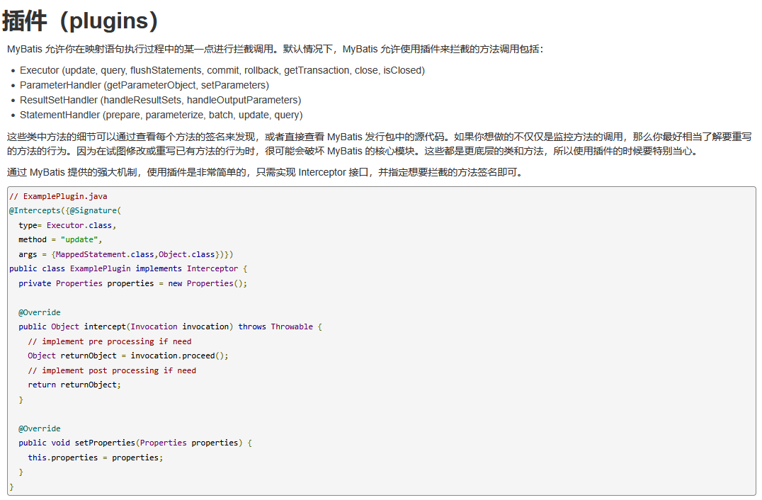 主要的注解包括:@org.apache.ibatis.plugin.Intercepts、@org.apache.ibatis.plugin.Signature